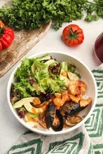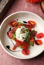 Для лёгкого перекуса вам предложат салат из спелых овощей и зелени, либо из морепродуктов. На обед можно подкрепится супом и основным блюдом - оджахури, цыплёнком тапака, сочным стейком, ароматными шашлыками или люля-кебаб из разного вида мяса.